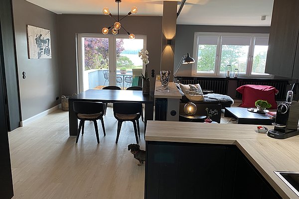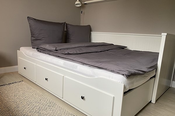 Auf einem atemberaubenden Grundstück mit einer Größe von ca. 1.000 qm erwartet Sie unser luxuriös saniertes Haus. Die Renovierung wurde im Juli 2020 abgeschlossen. Das Grundstück ist 20 Meter vom Salzhaff entfernt, Sie haben also direkten Haffblick - ein Traum, wenn abends dort die Sonne untergeht. Der ca. 55 qm große offene Wohn-, Koch- und Essbereich mit direktem Wasserblick wird ergänzt um zwei kleinere Schlafzimmer, welche jeweils mit Doppelbetten in der Größe von 160 cm x 200 cm ausgestattet sind.
